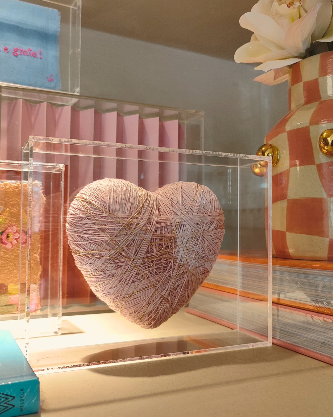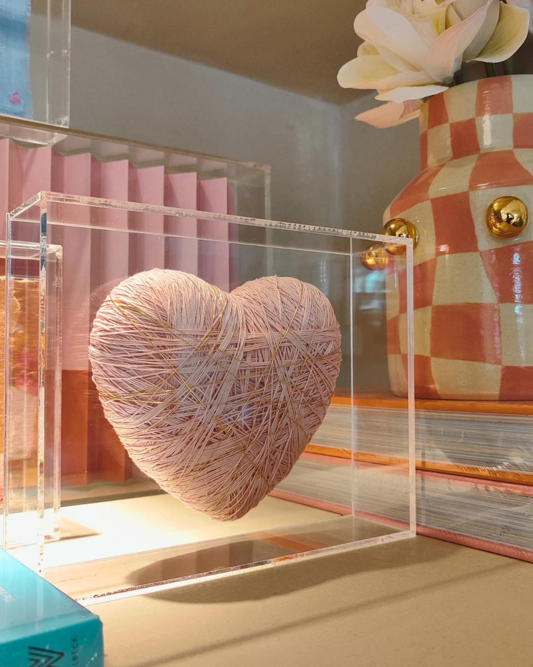 Caixa Acrílico Coração Fios de Cobre Rosa Claro G