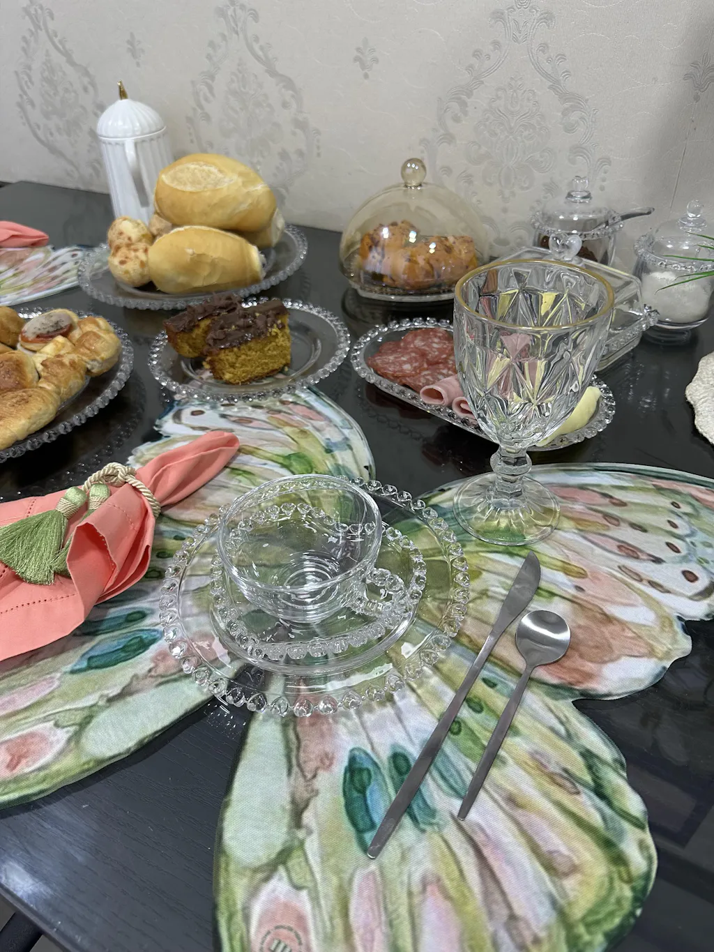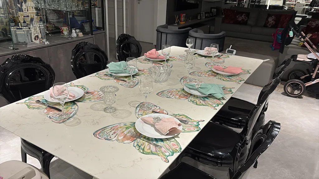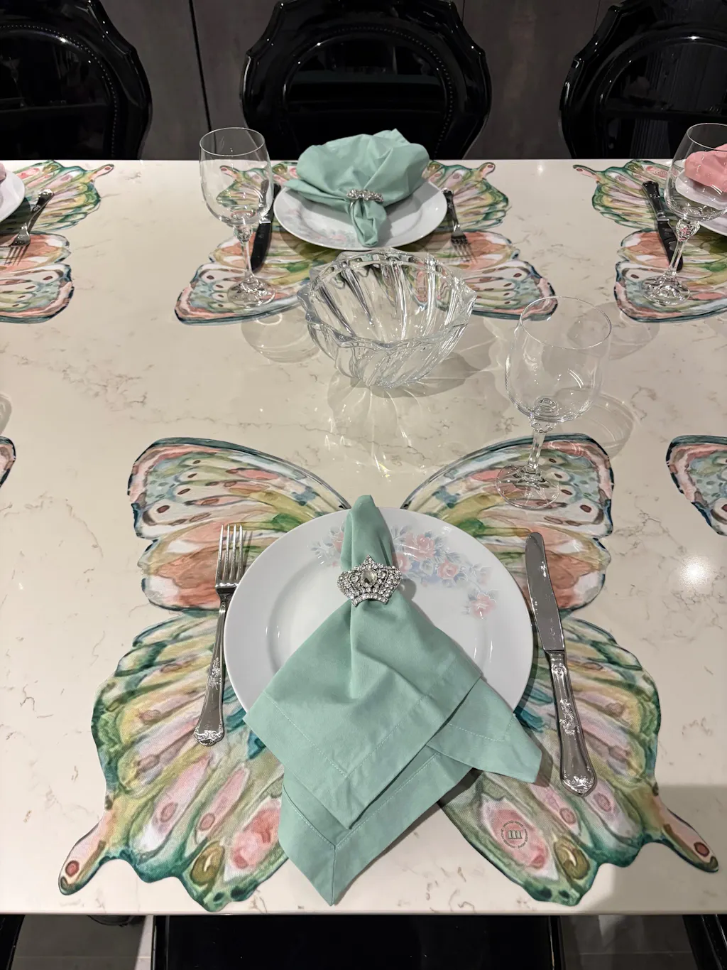 Jogo Americano orgânico em formato de borboleta. Delicado, sofisticado e divertido, para compor sua mesa posta no almoço, café da manhã ou jantar!