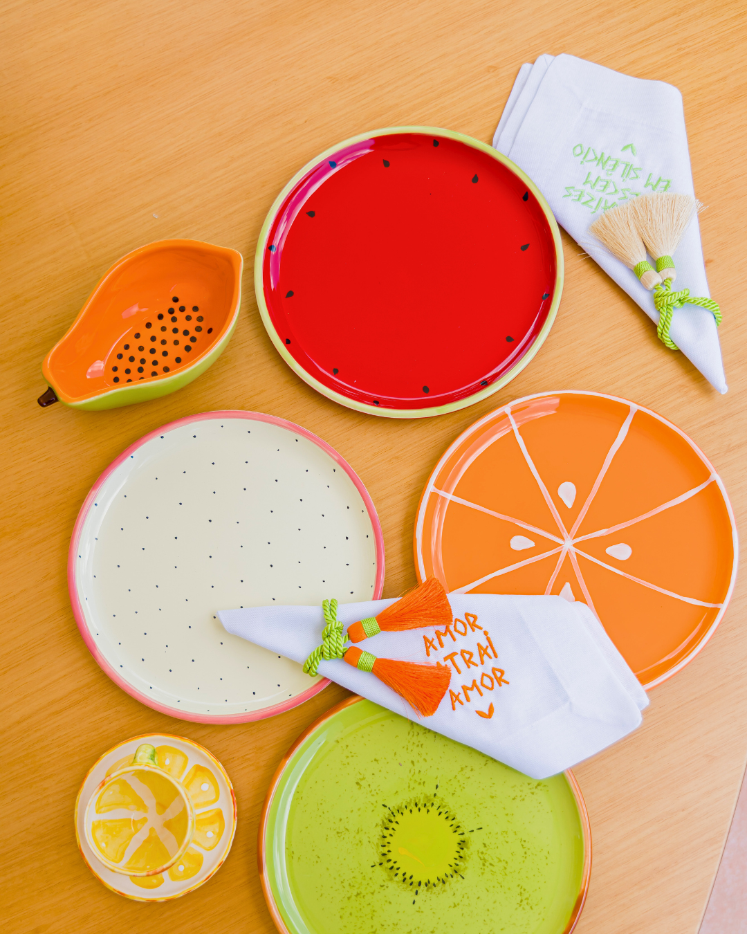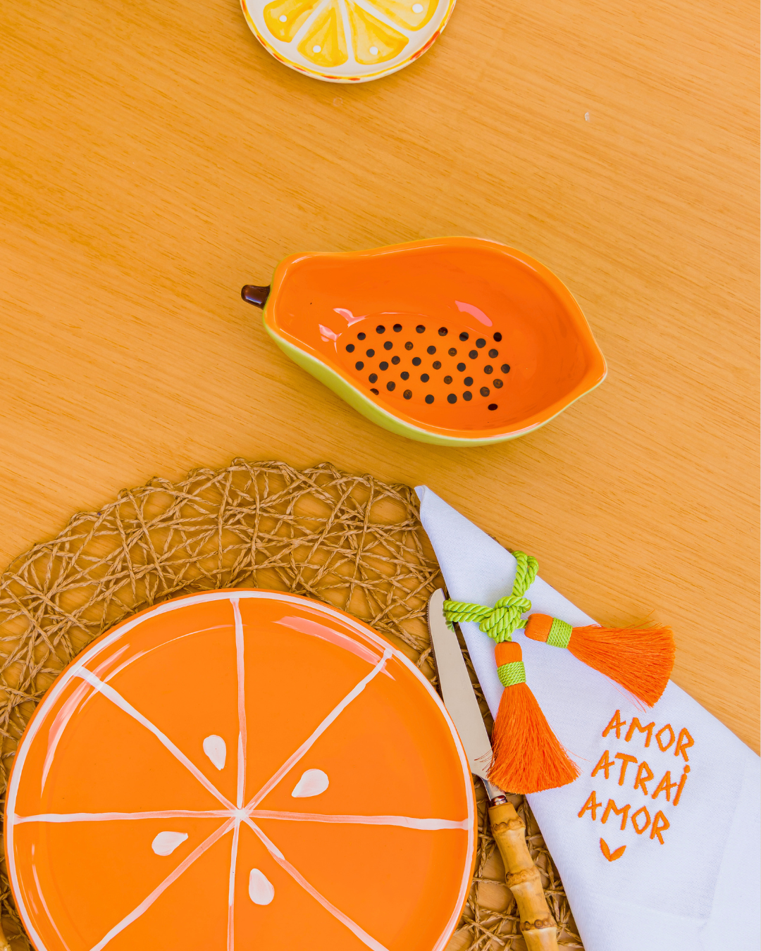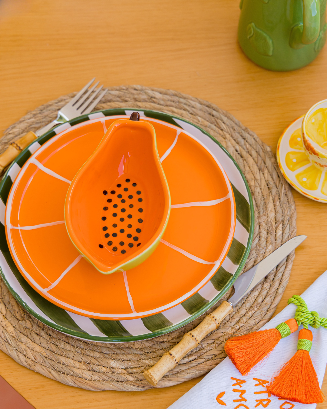 • Design único: O estilo inspirado no mamão traz um toque de frescor e diversão às suas refeições