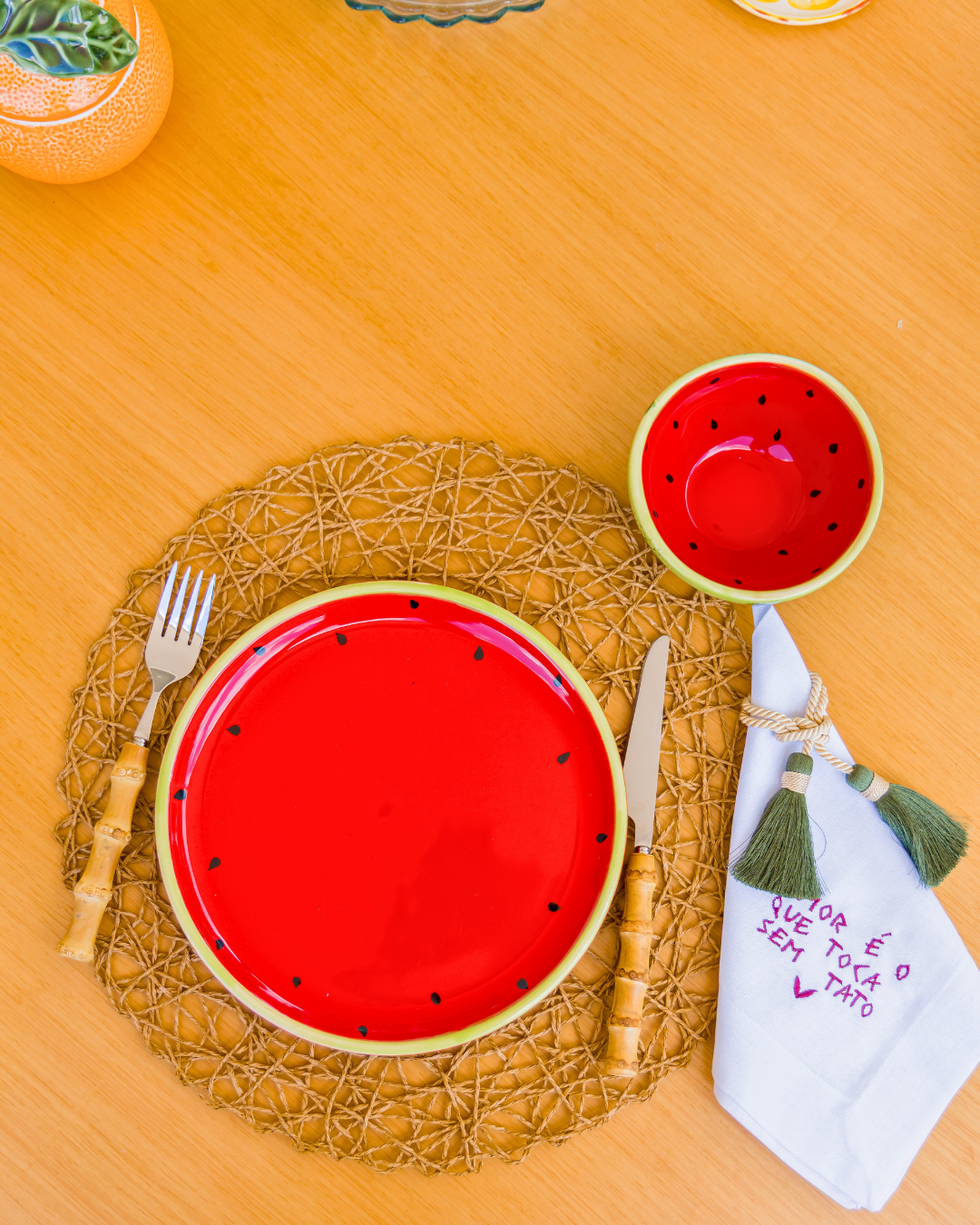 Design: Inspirado na melancia, com acabamento colorido e detalhado
