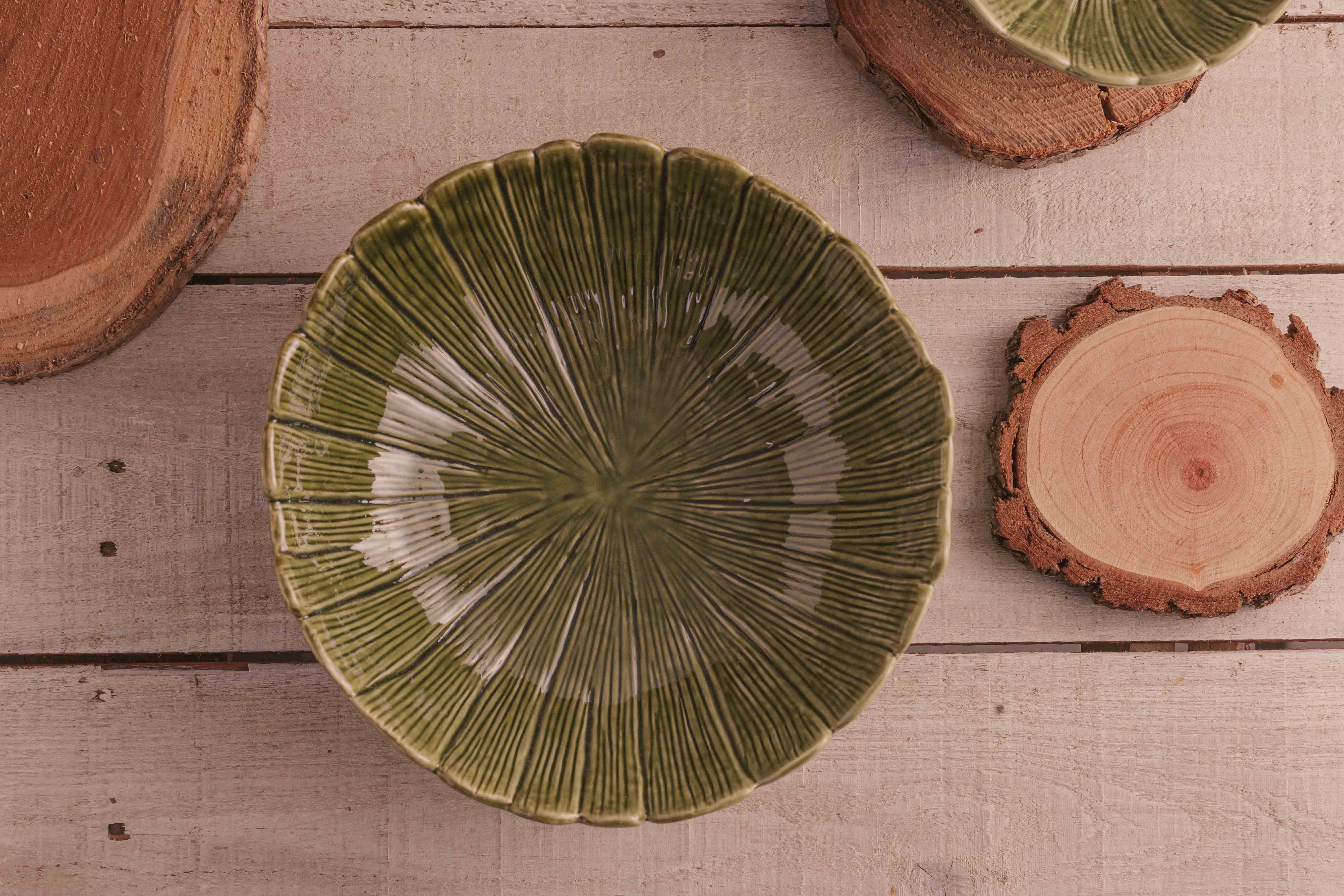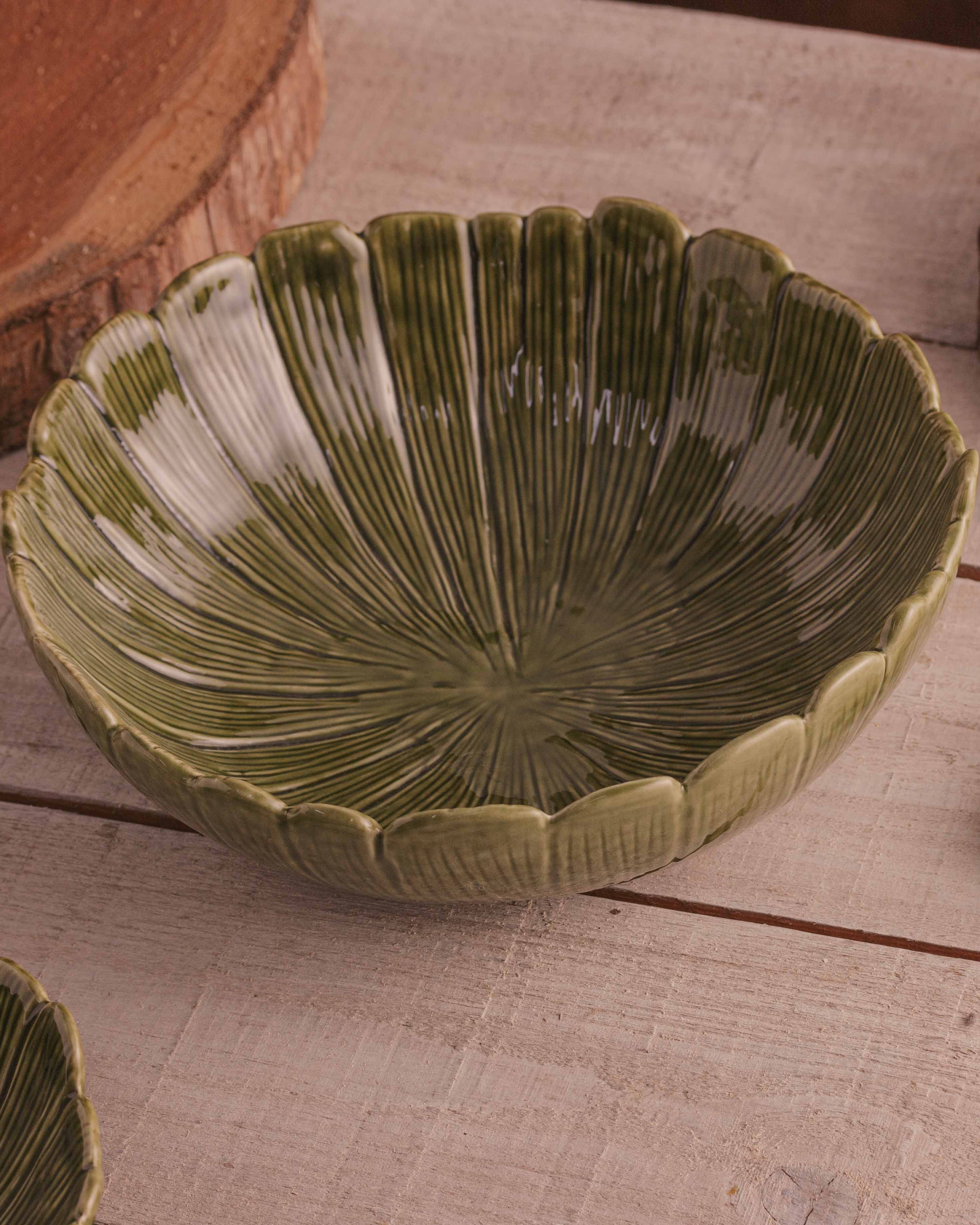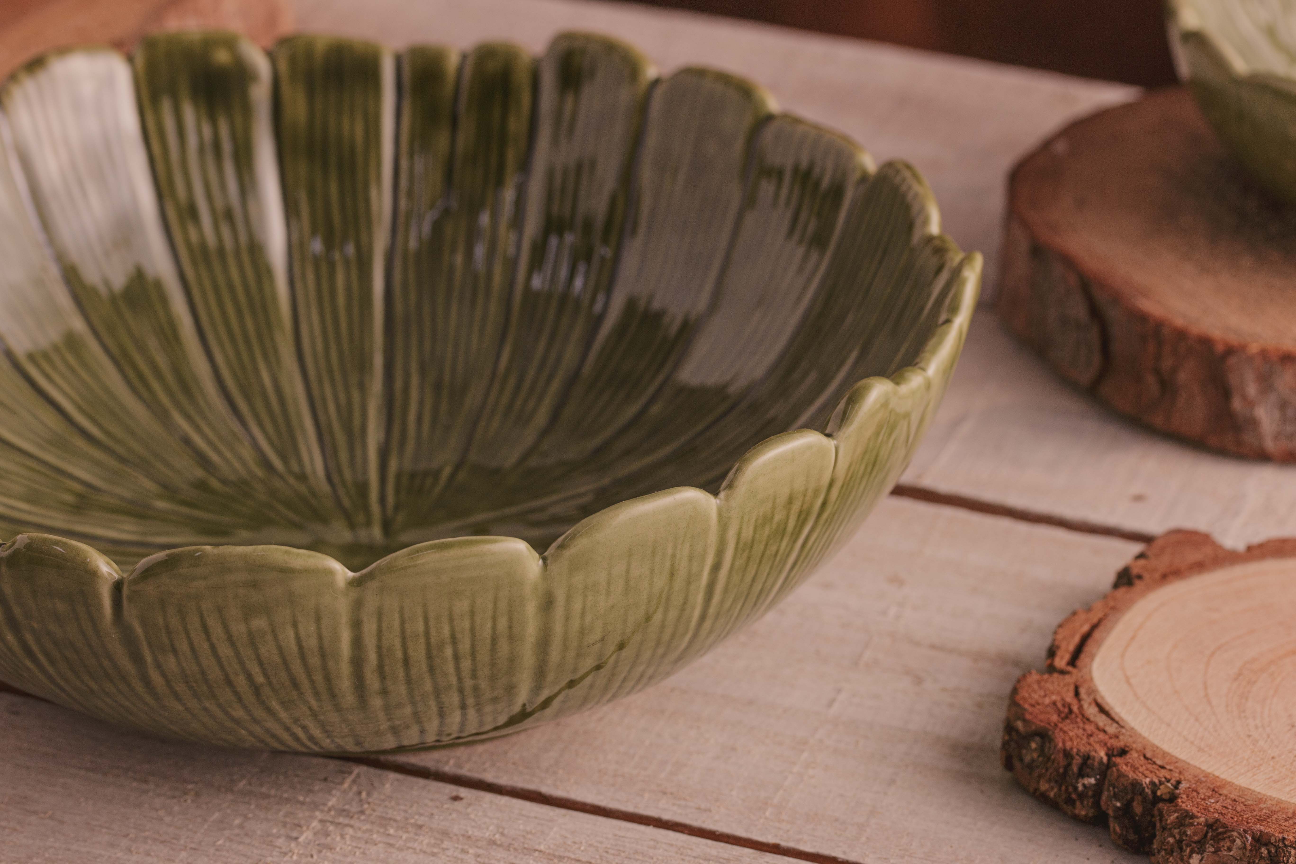 Centro de Mesa de Cerâmica Banana Leaf Verde 25cm x 8,5cm