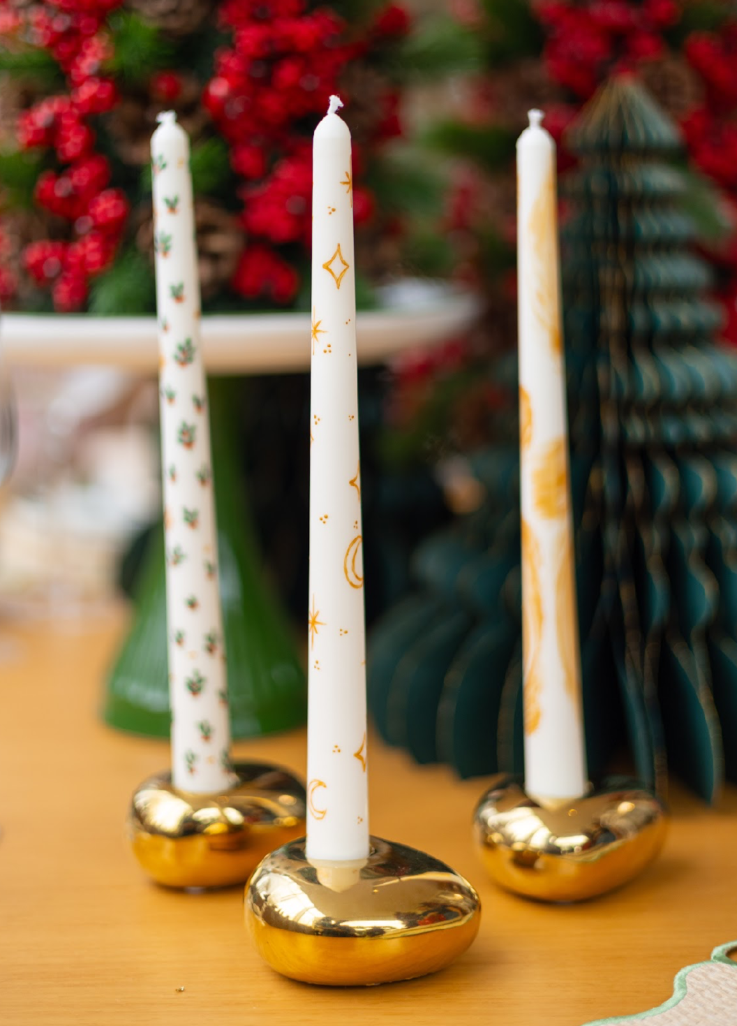 Seja para decorar, presentear ou criar um ambiente relaxante, o Trio de Porta-Velas em Cerâmica Dourada é um item essencial para quem aprecia detalhes sofisticados e atemporais.