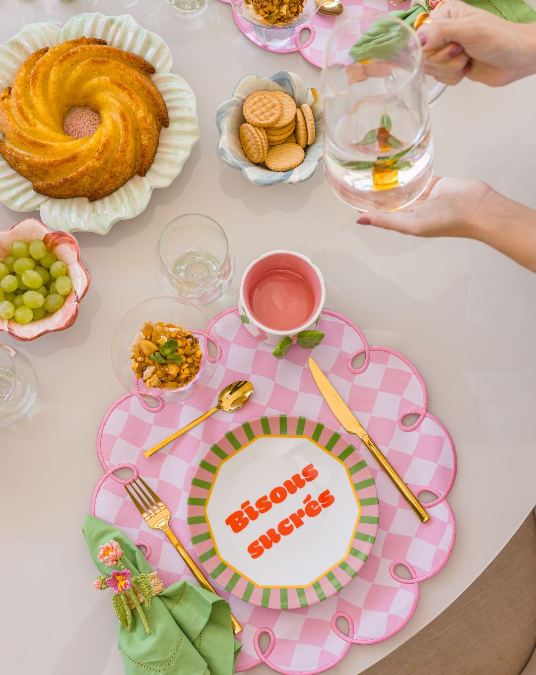 Delicado e cheio de charme, o Conjunto 4 Peças Jogo Americano Bistrô Rosé Xadrez é ideal para compor mesas elegantes, acolhedoras e cheias de personalidade. Com estampa xadrez em tom rosé suave e acabamento em bordas onduladas, o conjunto traz um visual romântico inspirado nos clássicos bistrôs e cafés europeus.