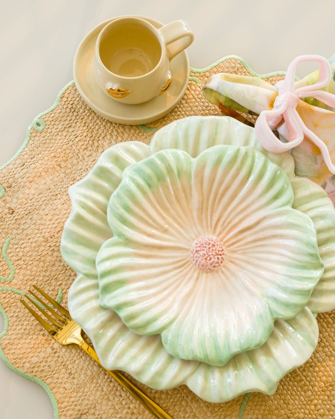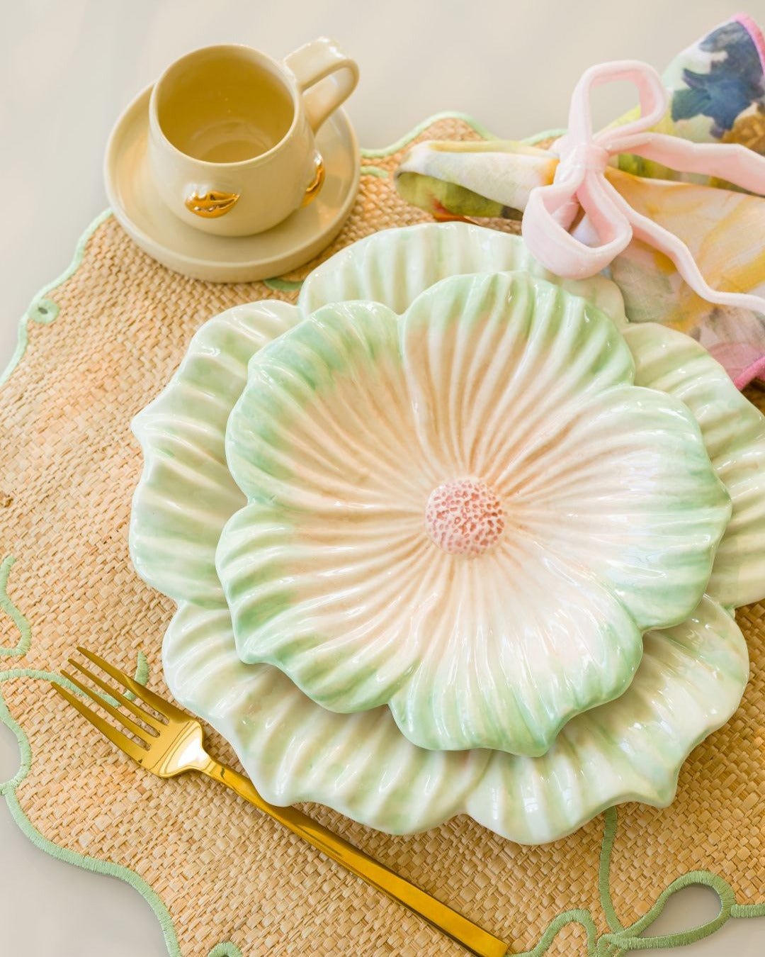 Imponente na medida certa e delicado em cada detalhe, o Prato Primavera Celeste – G é uma peça que transforma a mesa em cenário. Inspirado no desenho orgânico das flores em plena estação, seu formato floral com pétalas marcadas cria movimento e leveza, enquanto o miolo texturizado adiciona profundidade e charme artesanal.