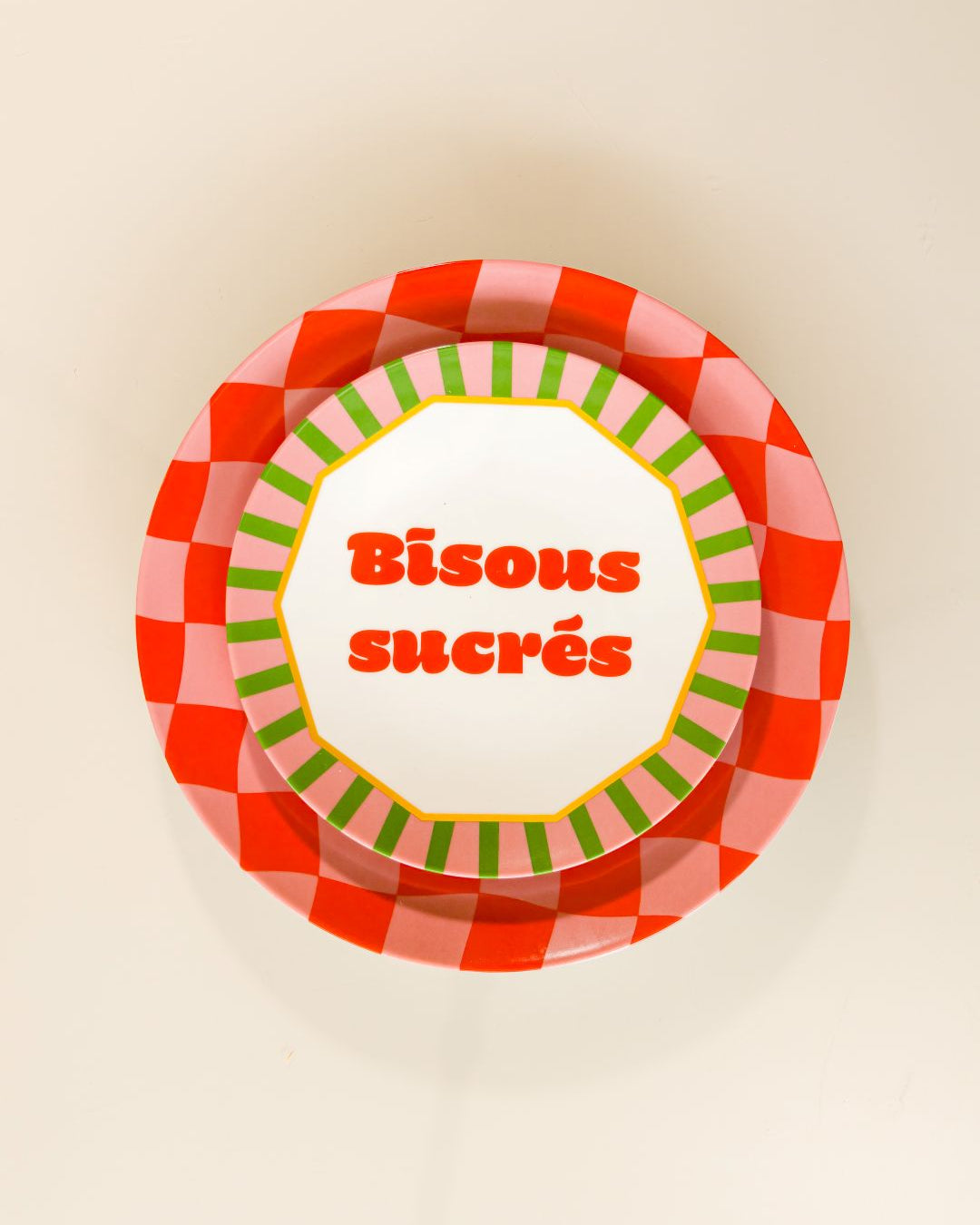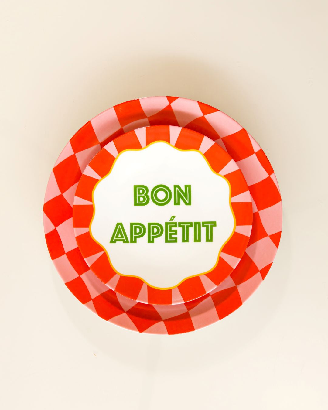 O Prato Raso Bisous Sucrés Xadrez é pura energia e presença à mesa. Seu padrão quadriculado em tons de vermelho cria uma composição marcante, cheia de personalidade e charme contemporâneo, perfeita para mesas que querem comunicar alegria e sofisticação ao mesmo tempo.