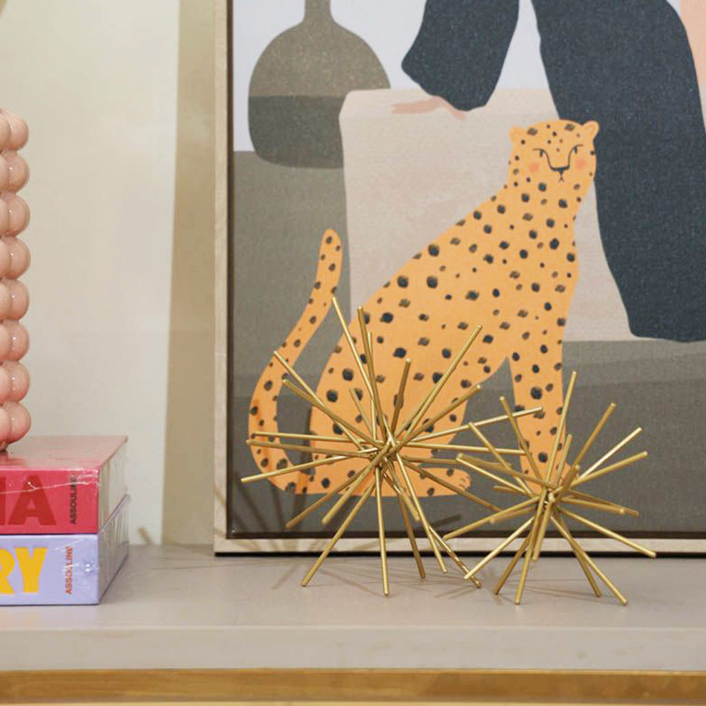 Ouriço em metal dourado, peças requintadas e elegantes que agregam toque contemporâneo e minimalista