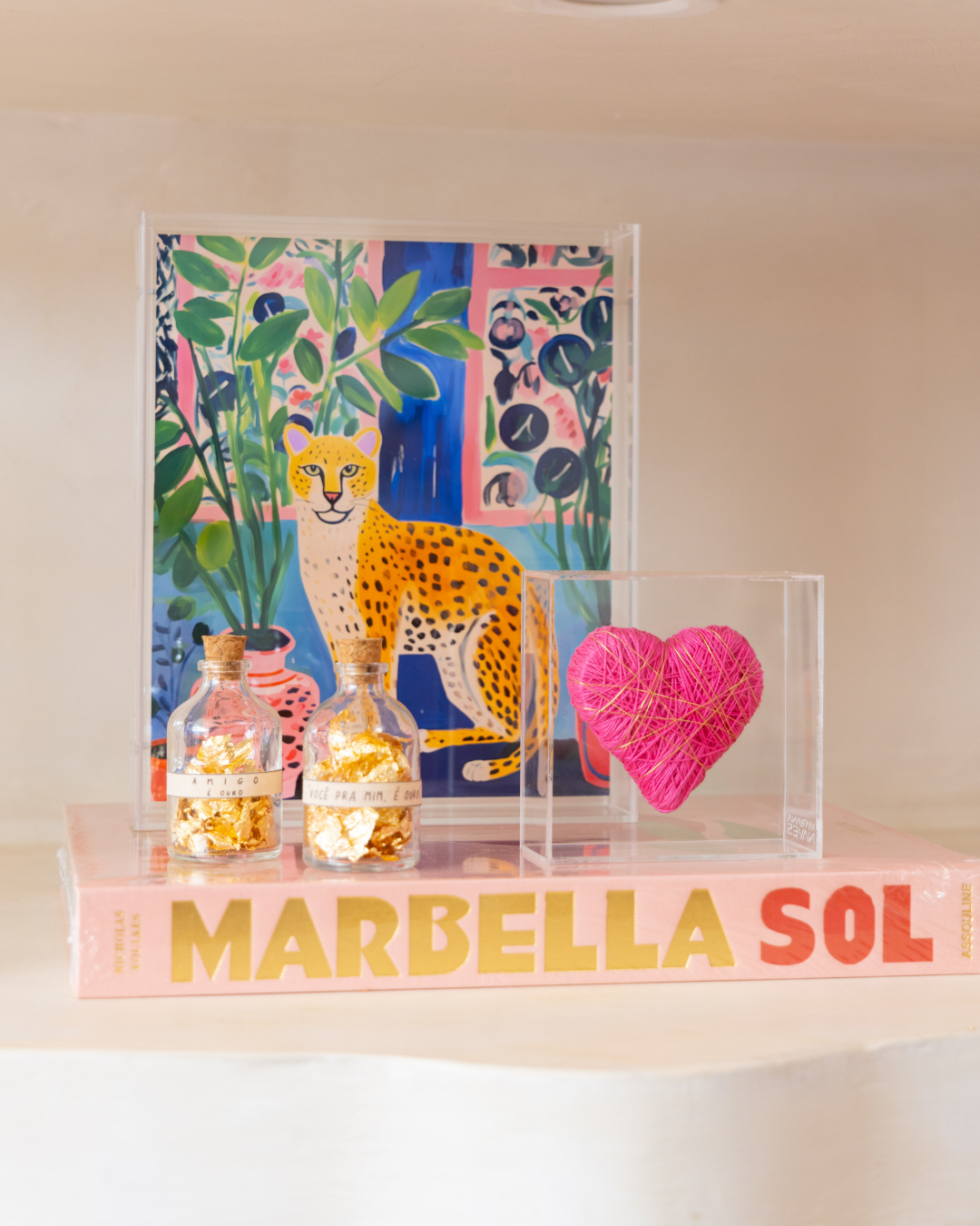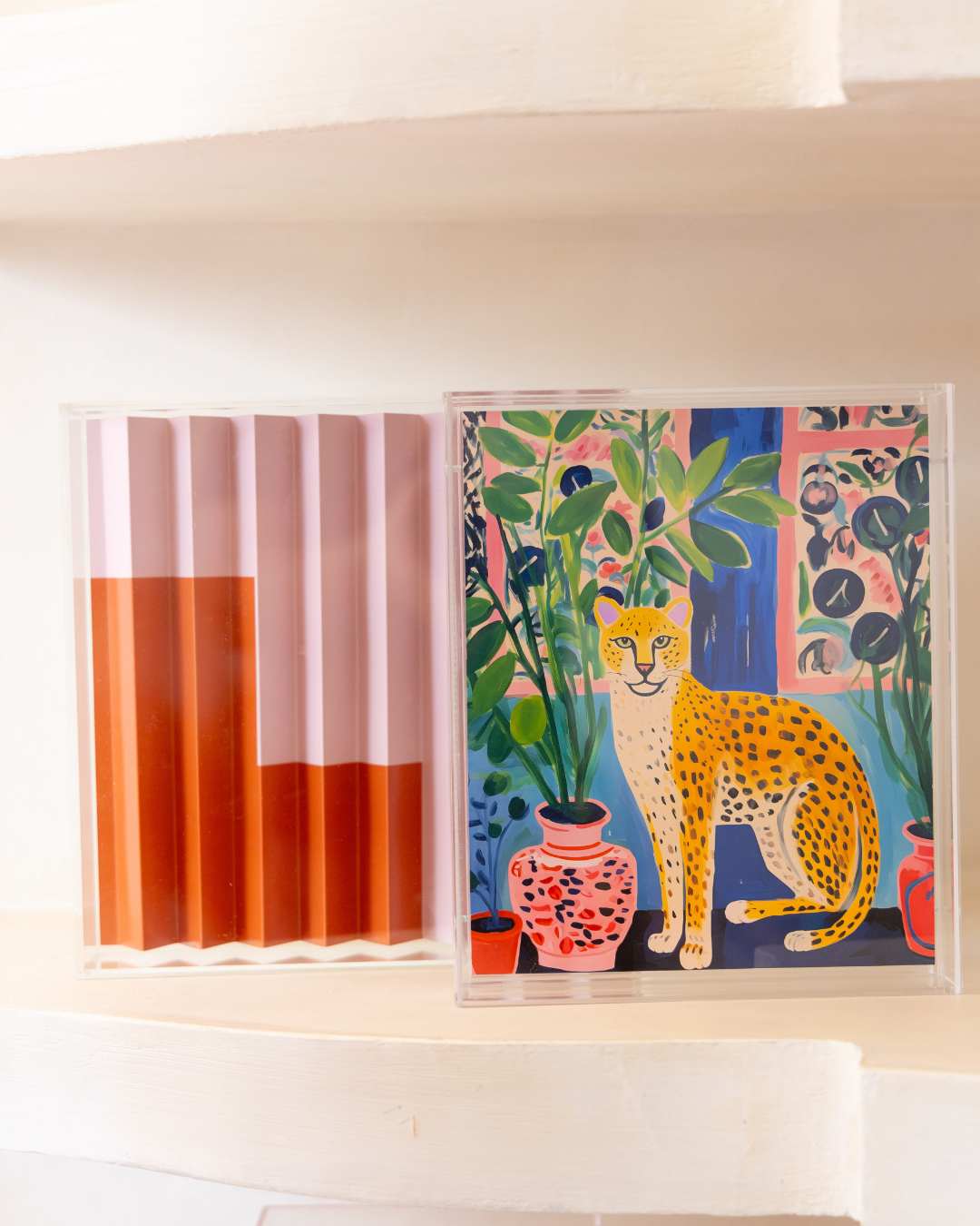 O Quadro Acrílico Matisse Style - Onça Pintada, com dimensões de 24 x 30 x 5 cm, traz uma explosão de cores e um design inspirado nas formas orgânicas e nas composições ousadas do estilo do artista Henri Matisse.