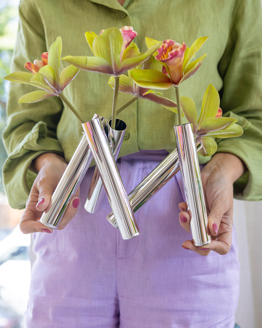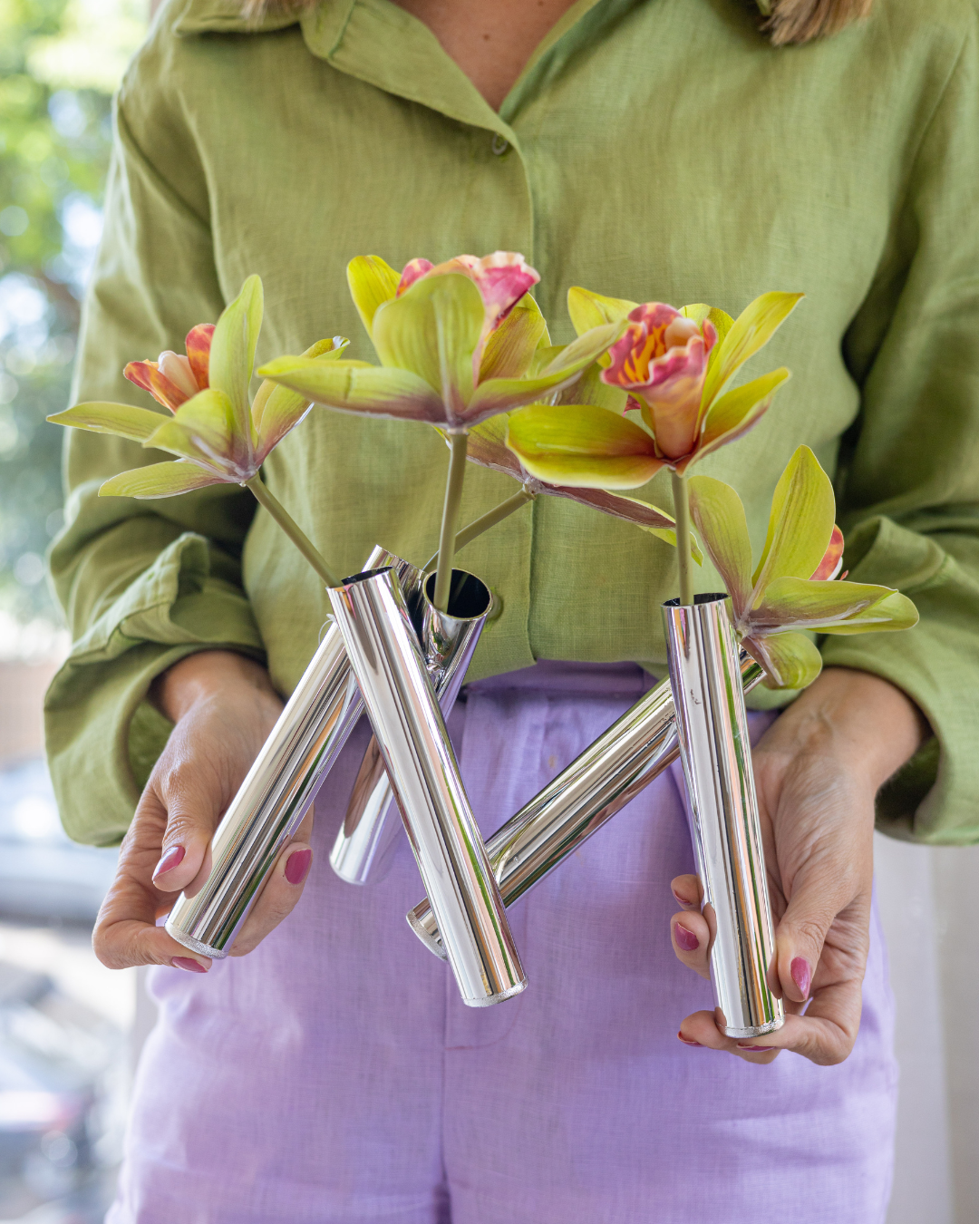 O design moderno encontra a elegância neste vaso decorativo em metal prata. Com estrutura tubular entrelaçada, acabamento espelhado e um visual arrojado, ele é perfeito para compor ambientes sofisticados, contemporâneos ou minimalistas.