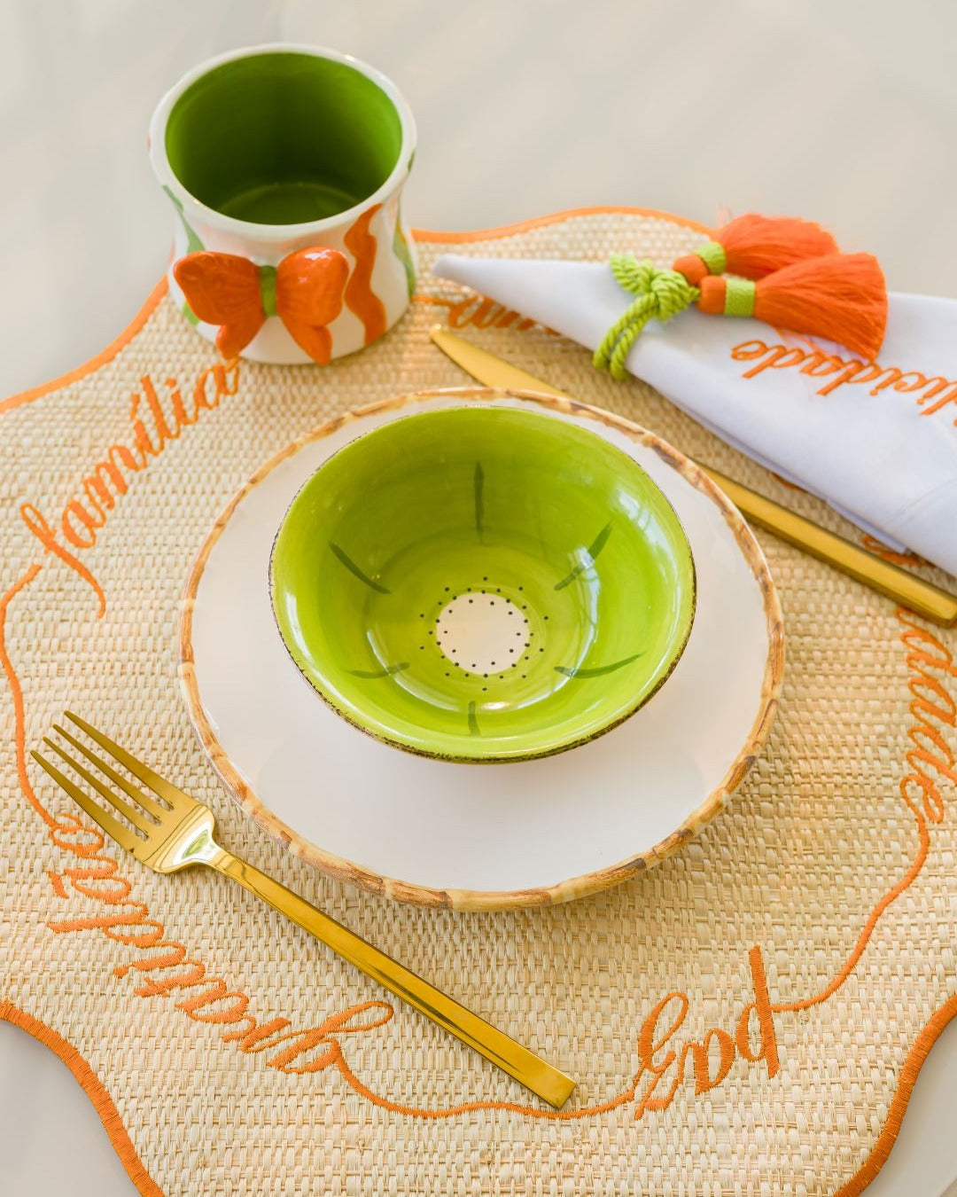 - Combine com louças neutras para destacar as cores e o design do jogo americano.