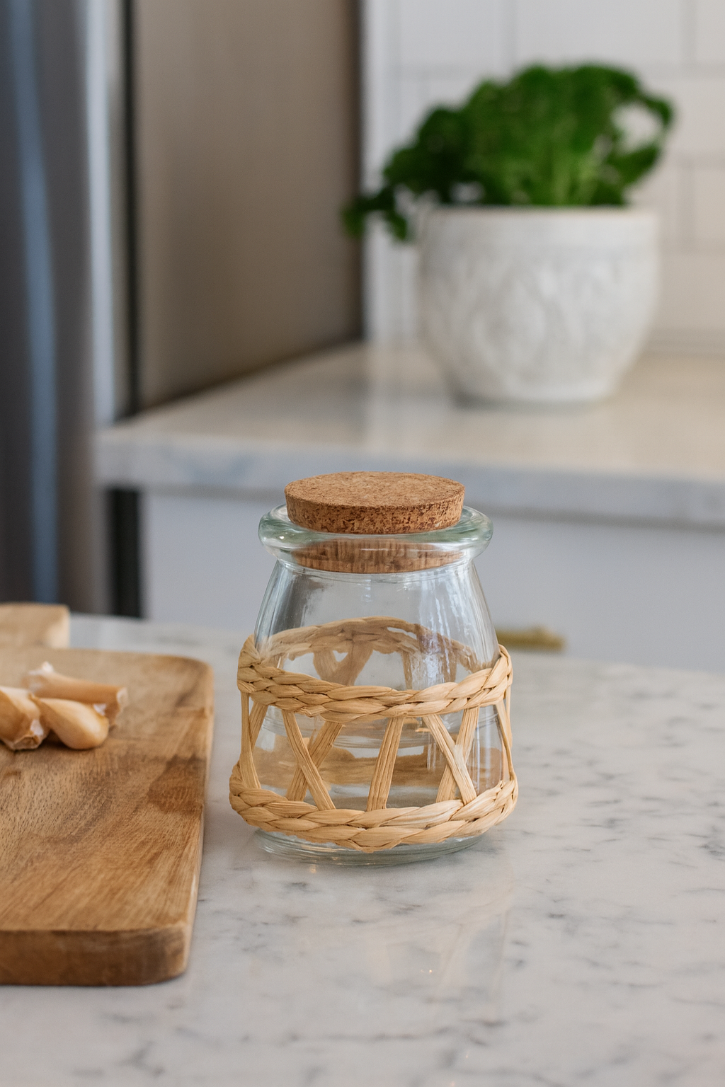 Pote com Tampa Rolha em Vidro e Fibra Natural - 250ml