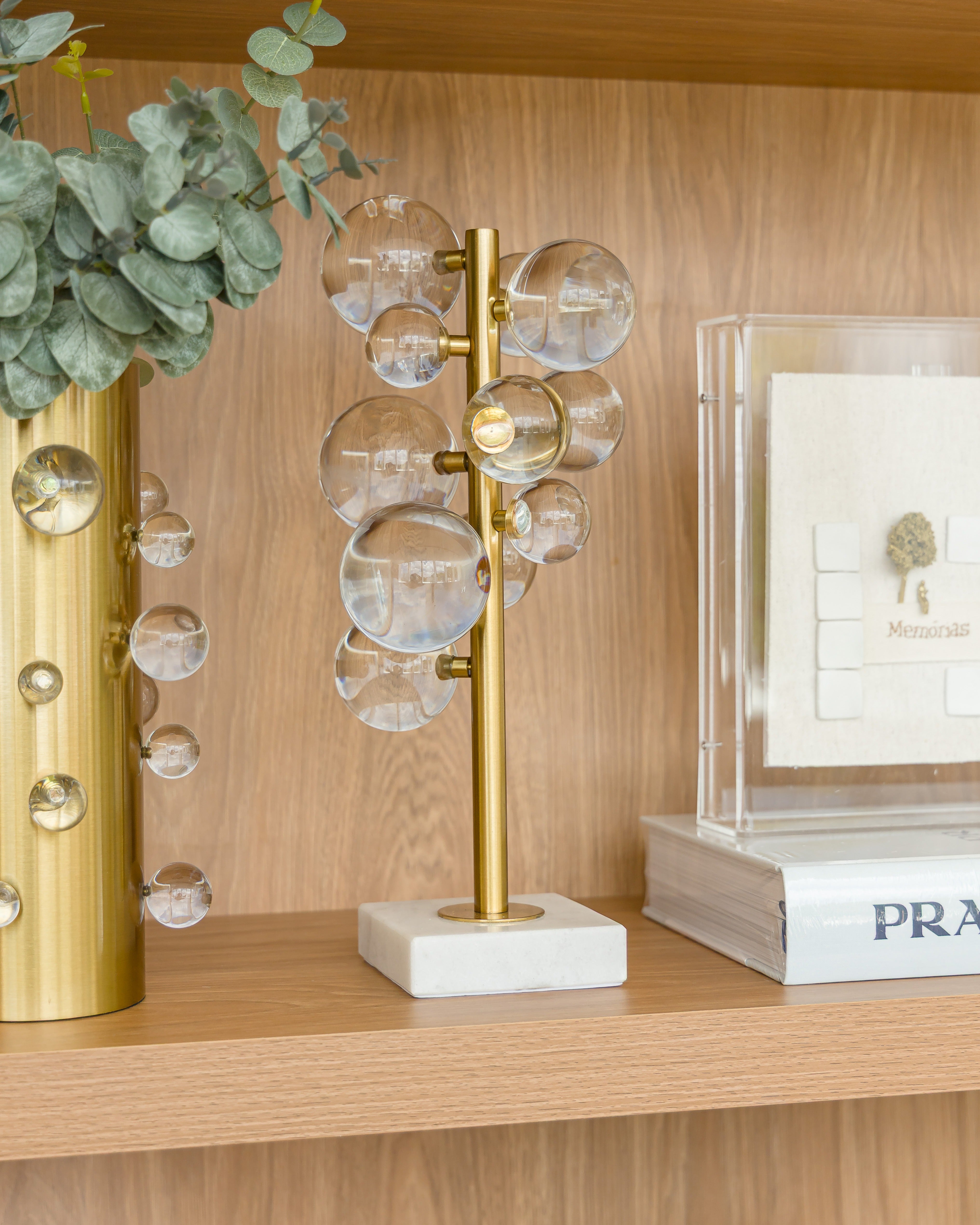 - Acabamento: Vidro translúcido em esferas esculpidas