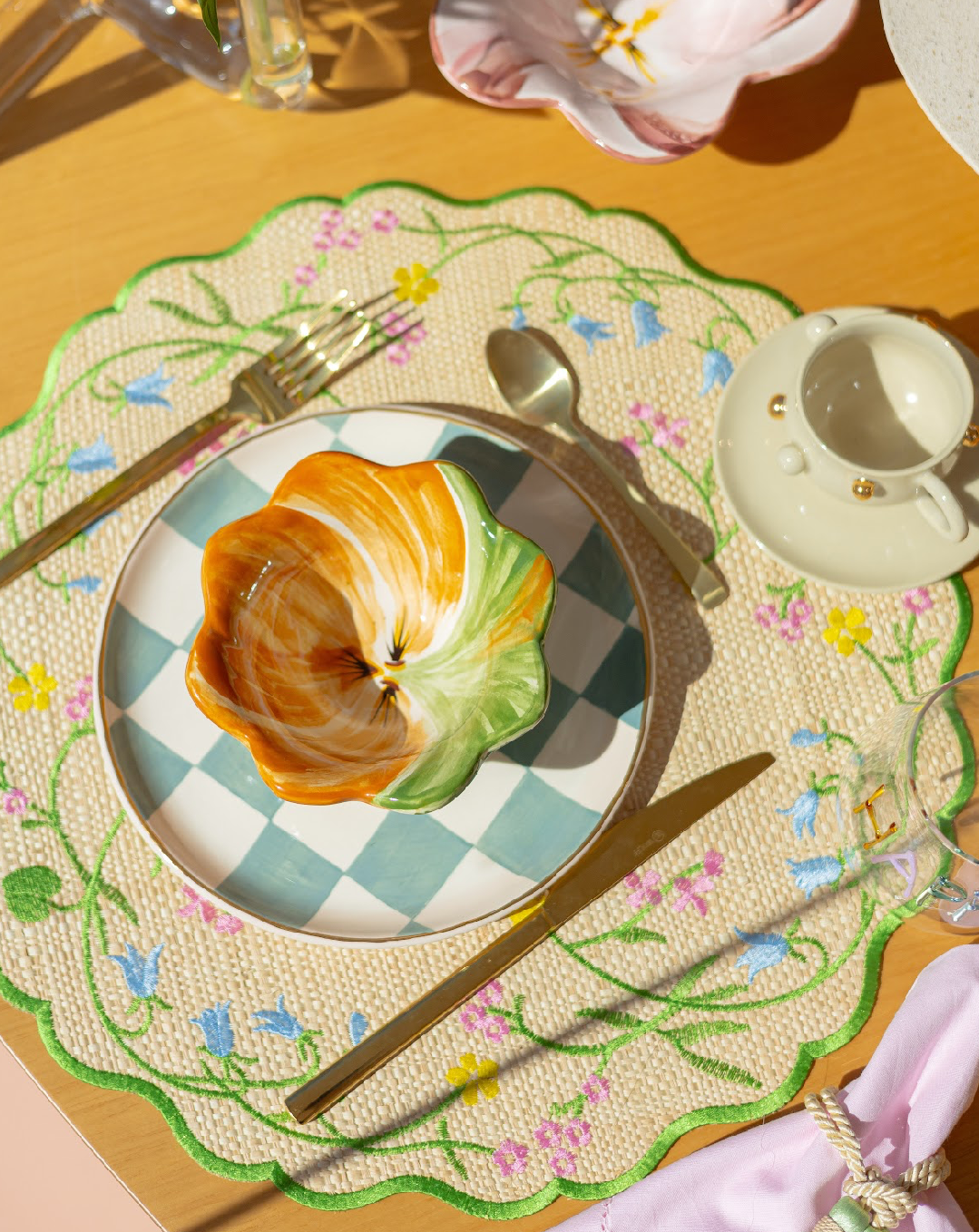 Este jogo americano é a escolha perfeita para quem busca beleza nos detalhes e aprecia uma mesa que convida à pausa, ao cuidado e à presença. Ele floresce em qualquer ocasião, deixando a decoração mais doce, vibrante e acolhedora.