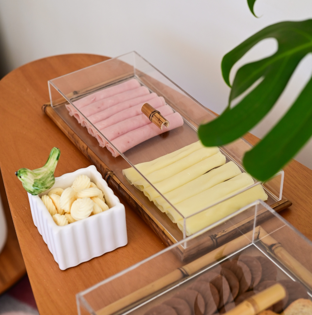 Porta Frios de Acrílico e Bambu com Tampa Retangular - 40 x 17
