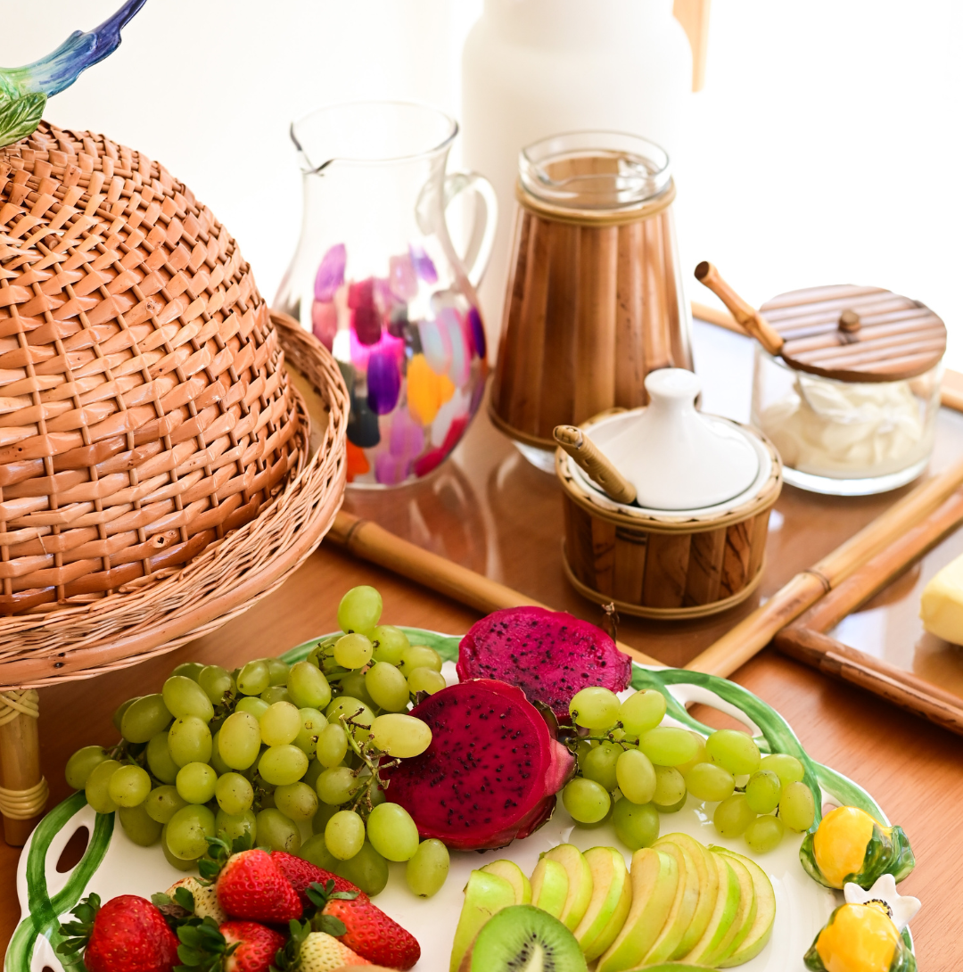 Jarra bambu confeccionada em vidro com revestimento de bambu. Peças artesanais que agregam leveza, sofisticação e tropicalidade.