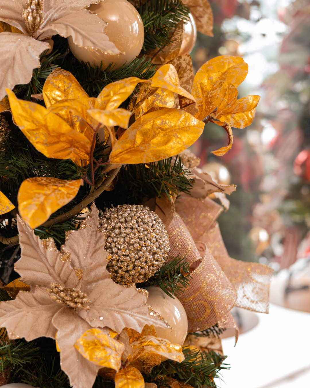 Celebre o Natal com o encanto e a sofisticação da Árvore de Natal Champagne Glam, uma peça que traduz a beleza e a leveza das festas de fim de ano.