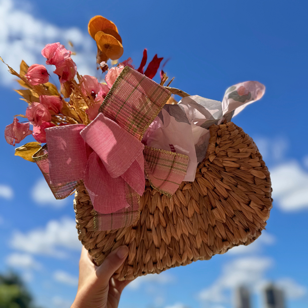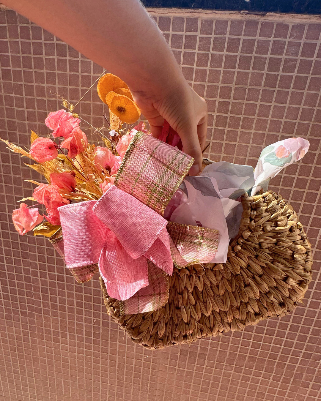 Descrição: Surpreenda nesta Páscoa com a Cesta de Páscoa Laço, um presente encantador e sofisticado! Feita com palha natural trançada em formato elegante, essa cesta traz um toque rústico e delicado para presentear ou decorar. O destaque fica por conta do lindo laço em tons de rosa e dos arranjos florais cuidadosamente escolhidos para compor um visual harmonioso.