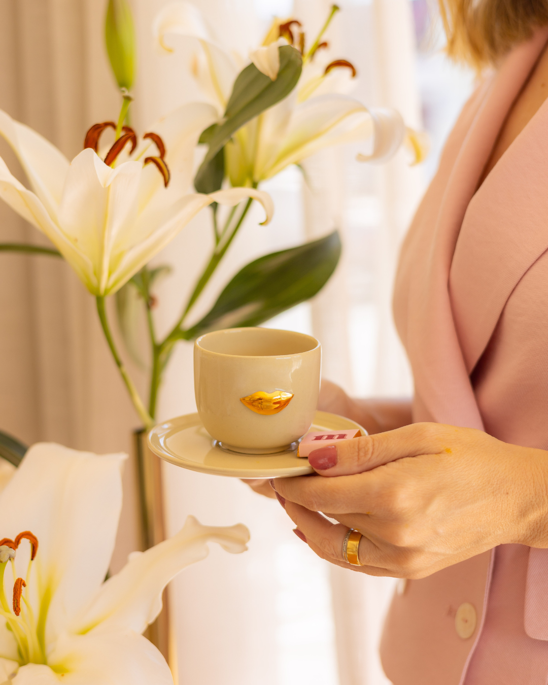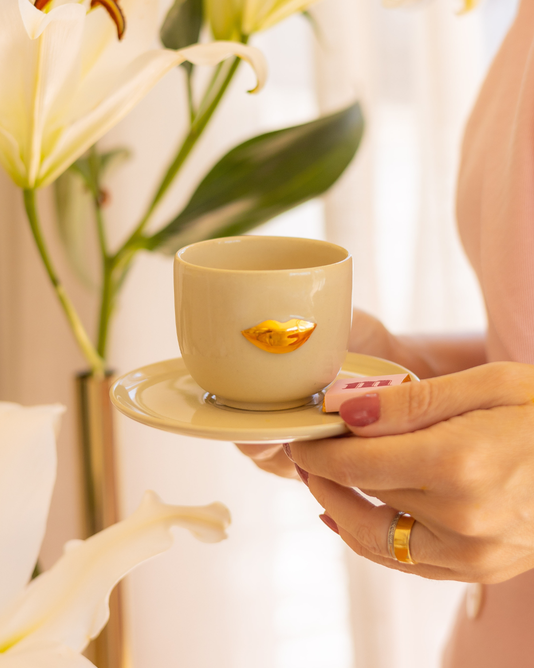 Xícara Nude Boca Dourada: