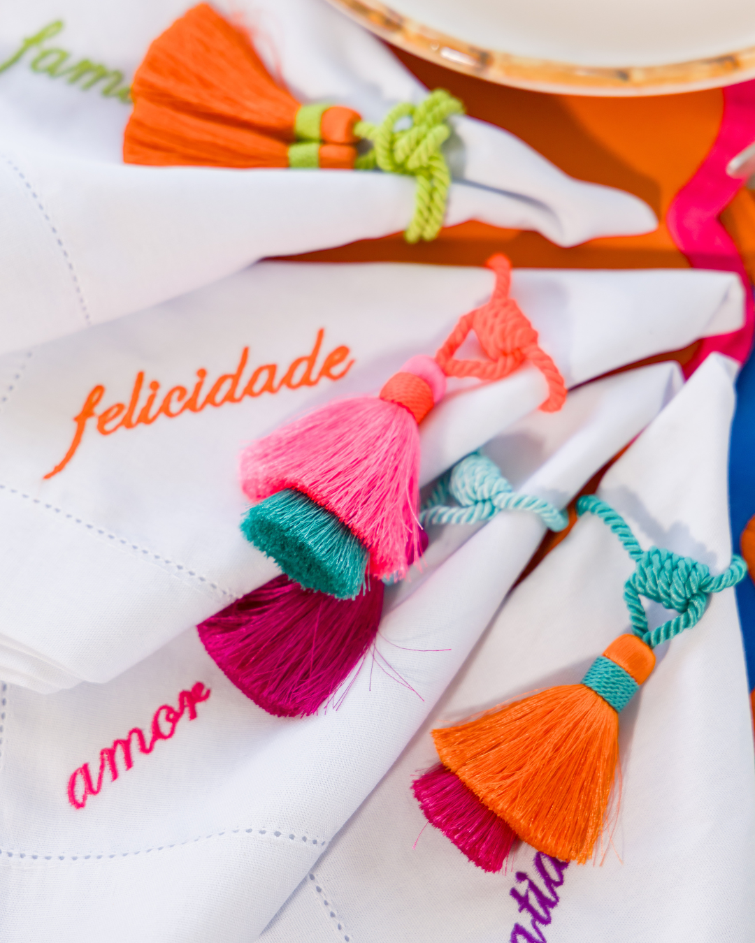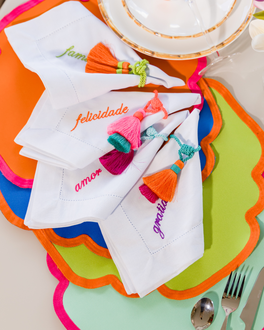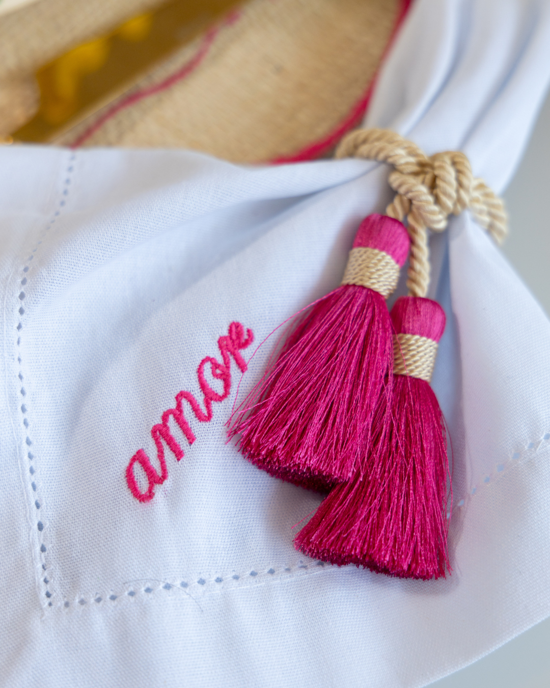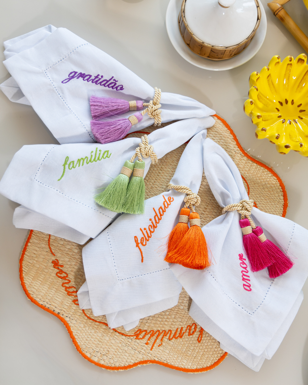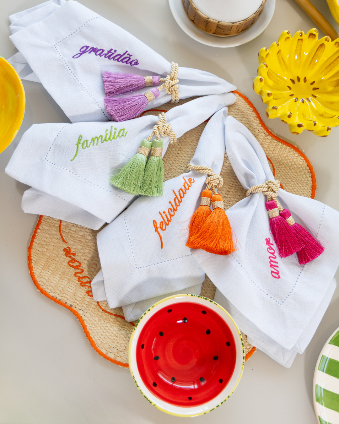 Conjunto 4 Guardanapos de Linho Bordados Palavras