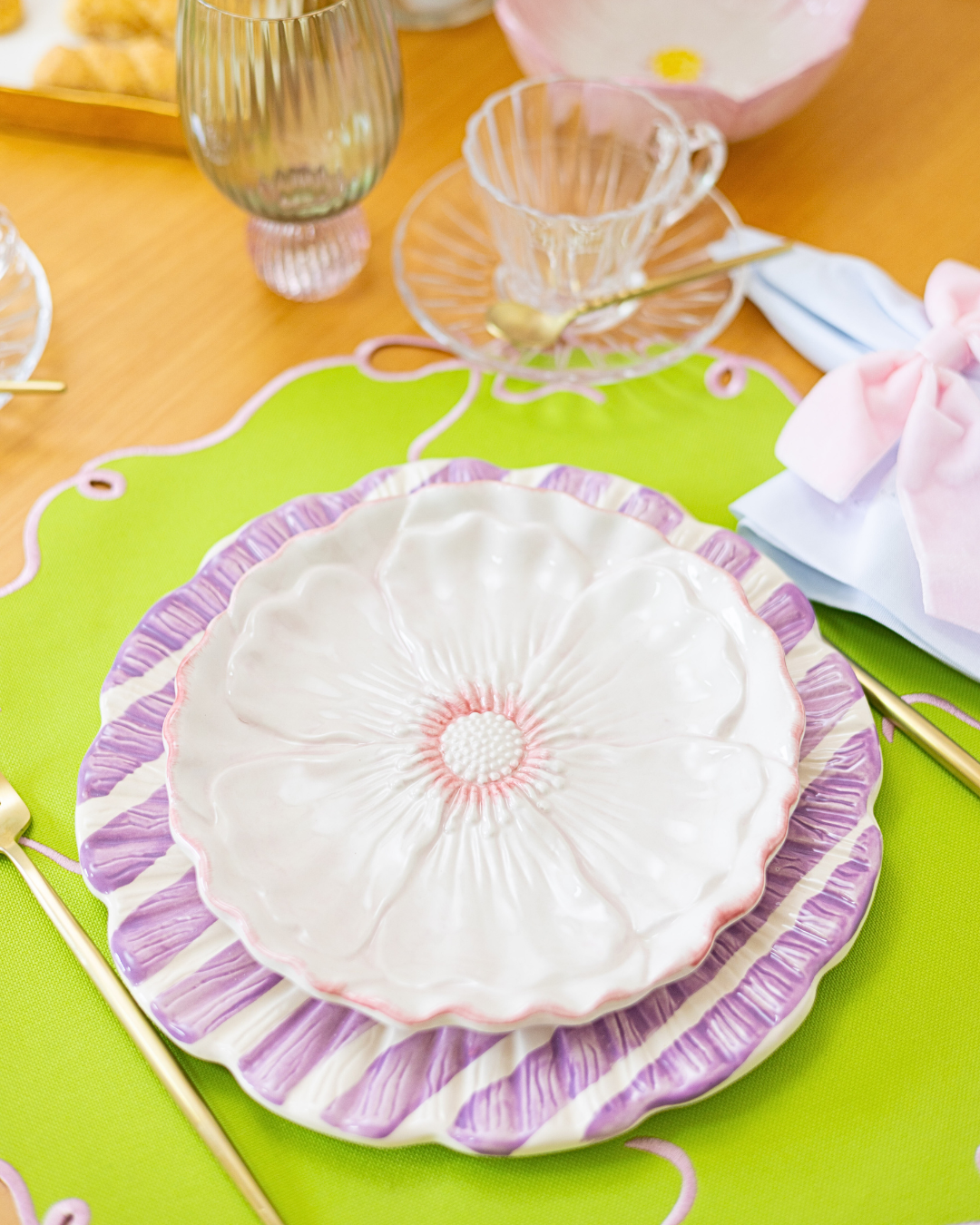Prato de Sobremesa Flor Decorativo - Branco e Rosa