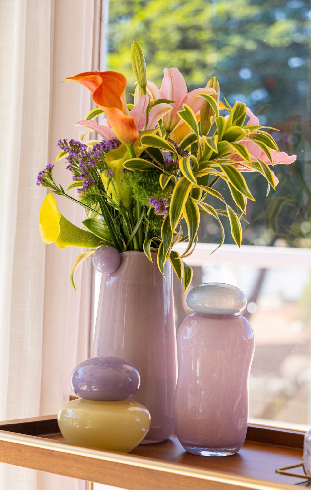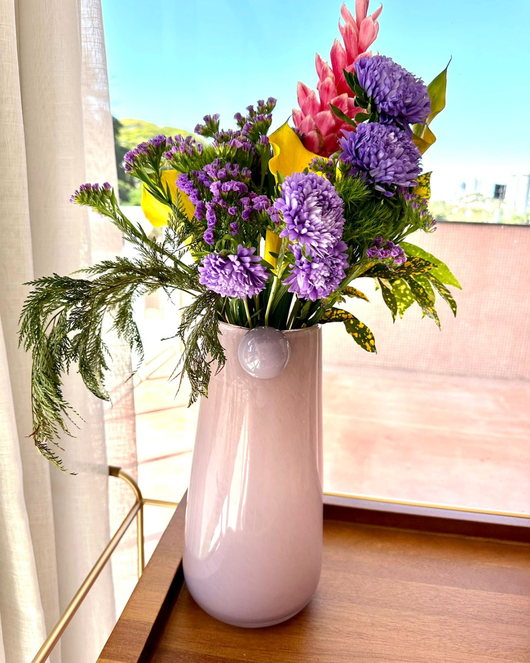 - Acabamento Premium: O acabamento liso e translúcido do vidro rosa oferece um toque de luxo e exclusividade, realçando a beleza de qualquer arranjo floral.