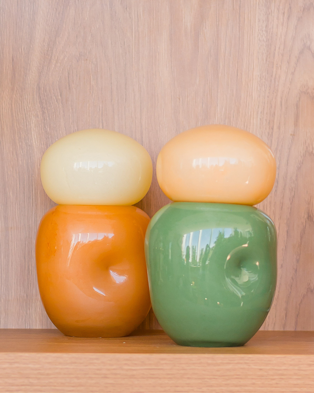 Este vaso de vidro bicolor é uma peça marcante que une modernidade e elegância em um único design. Com uma base em tom laranja vibrante e topo em bege suave, ele se destaca pela combinação harmoniosa de cores e pelo acabamento em vidro brilhante, que valoriza sua presença em qualquer ambiente.