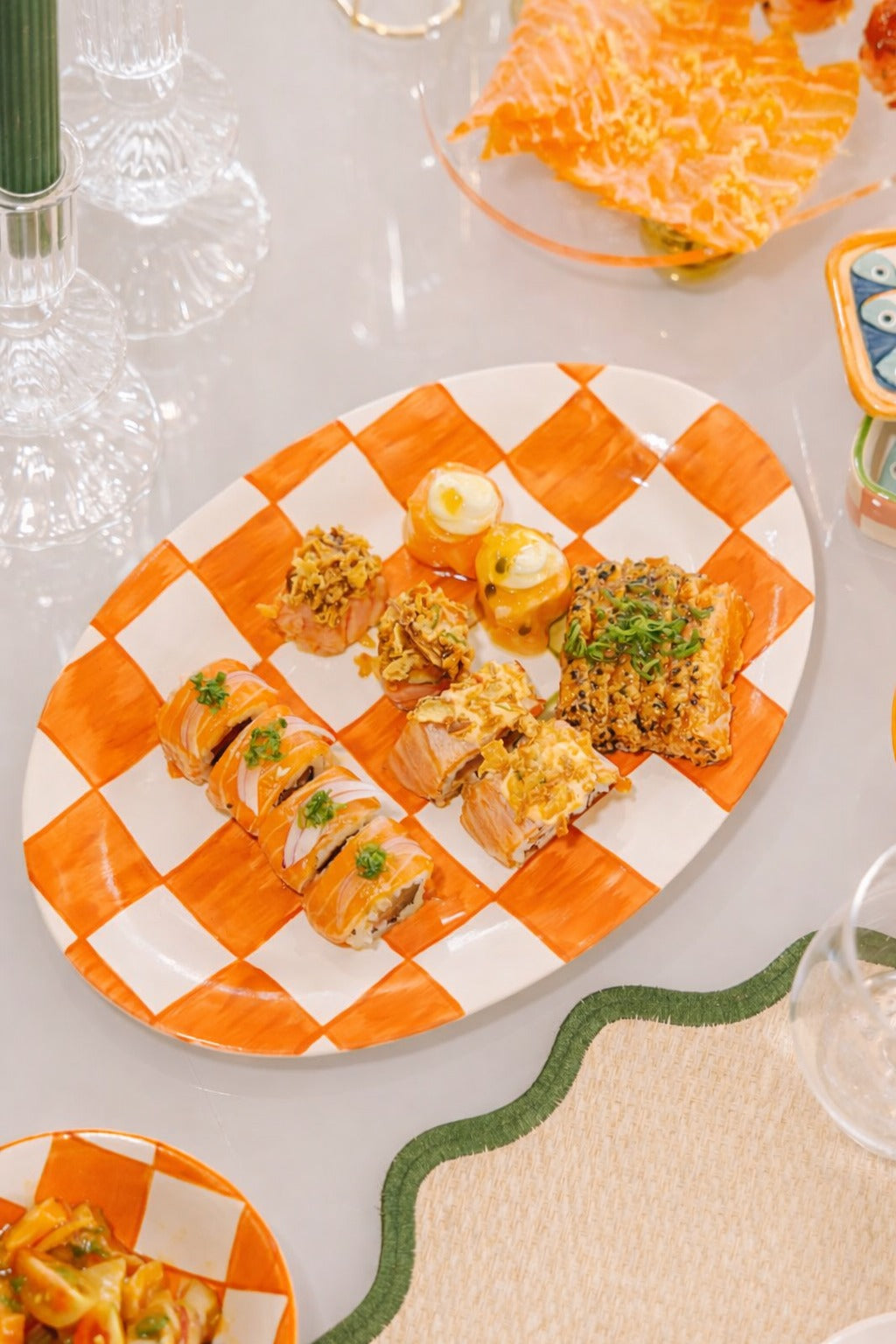 Bandeja Xadrez Laranja em Cerâmica – 32x22cm