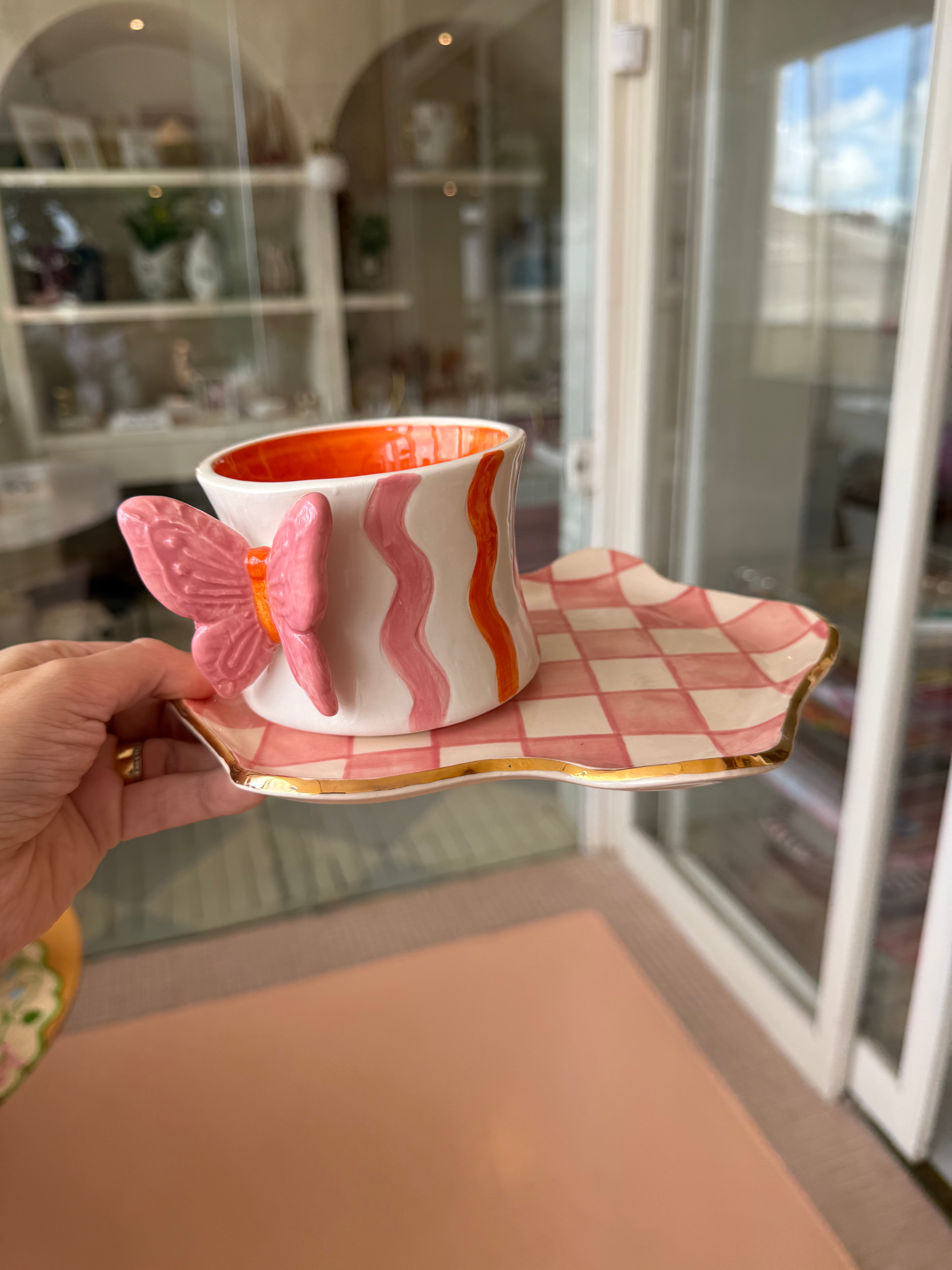 Delicada e cheia de charme, a Caneca Borboleta Encanto Rosa em Cerâmica traz um toque romântico e contemporâneo para os seus momentos de pausa. Com base em tom off-white e listras onduladas em rosa e laranja, a peça combina suavidade e personalidade em um design autoral.