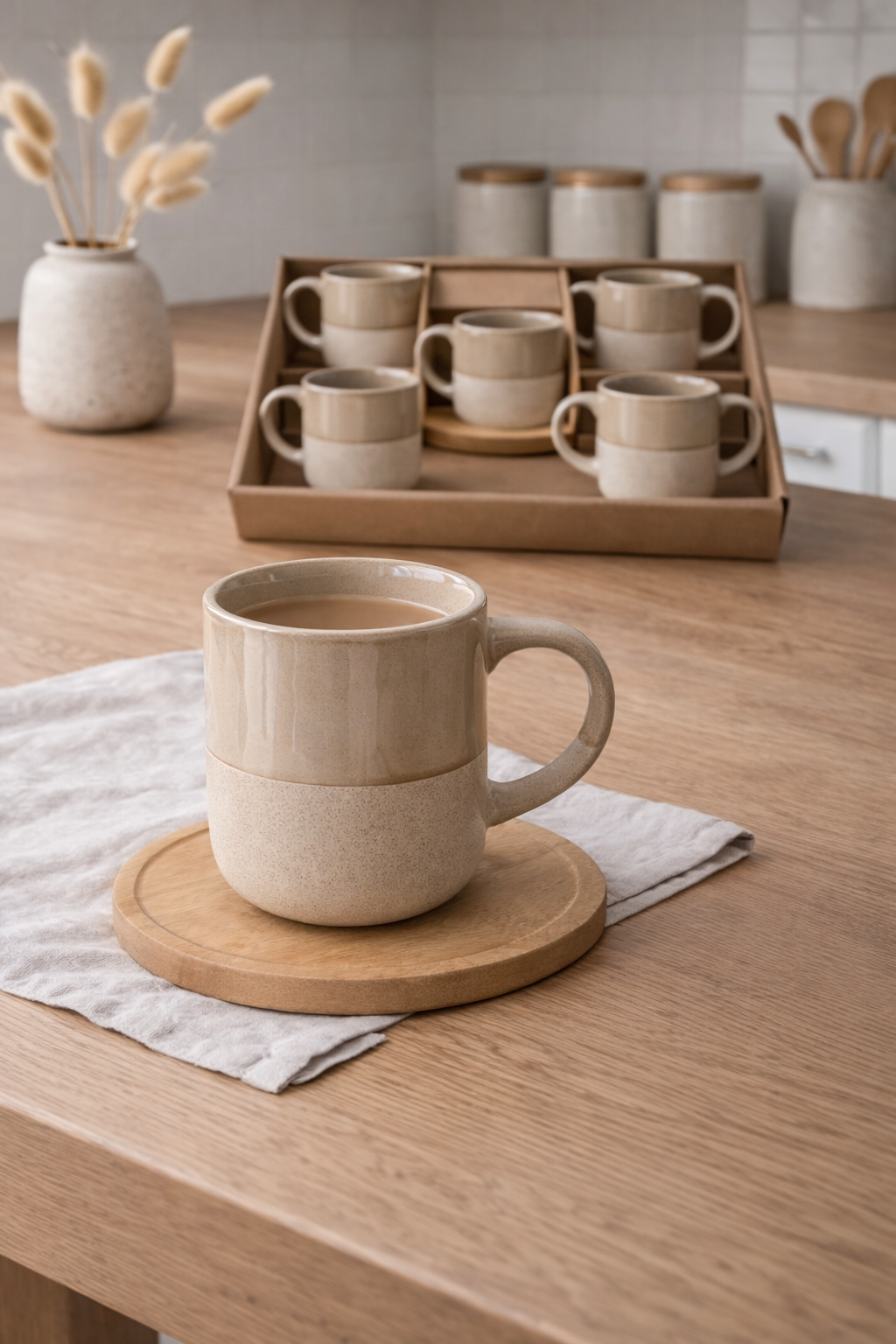 Conjunto de Xícaras em Cerâmica Esmaltada Bege – 6 Peças