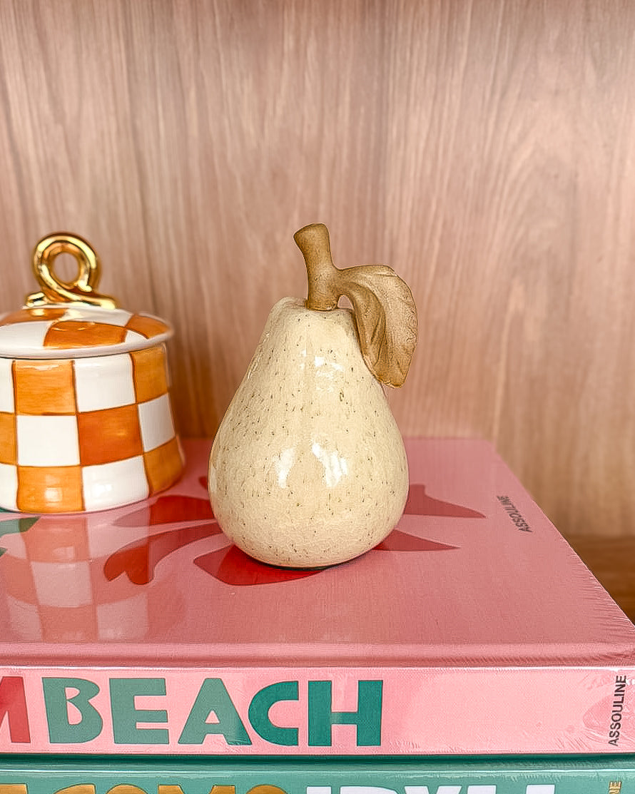 Escultura Pera Alva em Cerâmica Esmaltada Bege – M