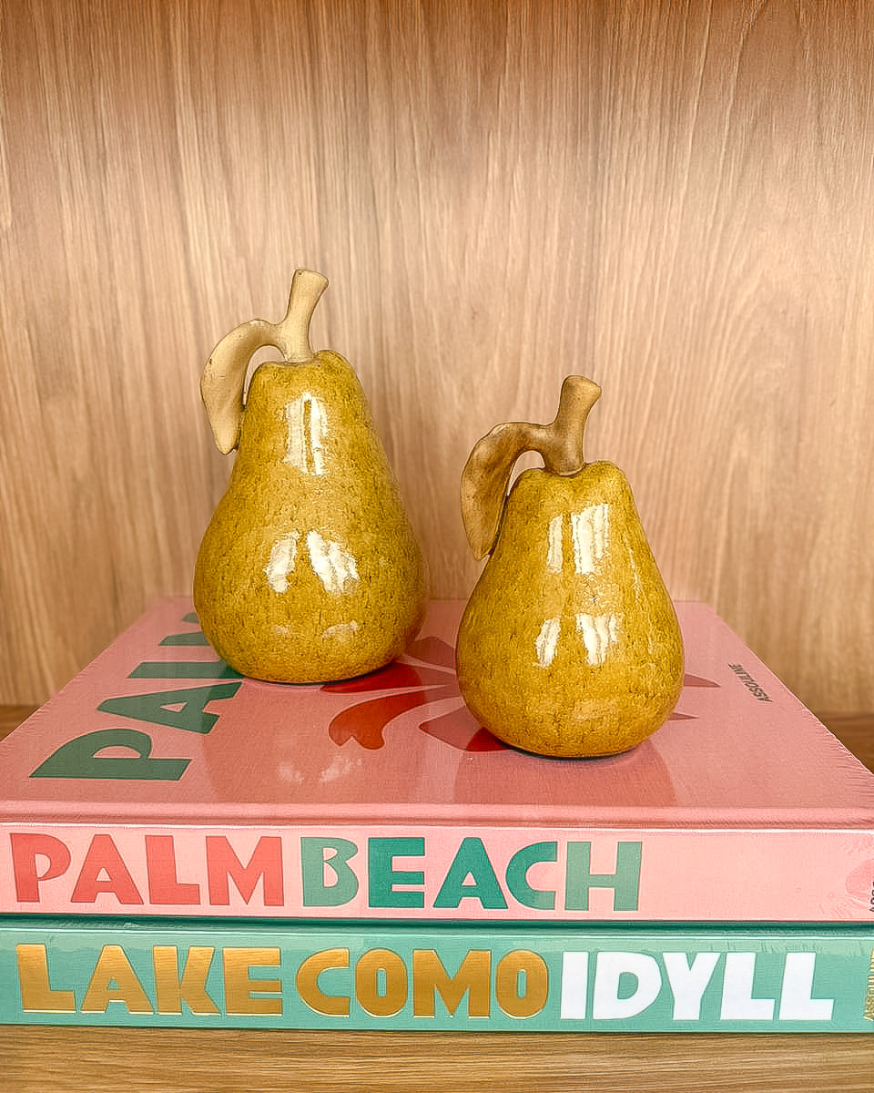A Escultura Pera Outonal traduz a beleza das formas orgânicas em uma peça decorativa sofisticada e atemporal. Com acabamento em cerâmica esmaltada no tom bege escuro, sua superfície levemente mesclada revela nuances naturais que remetem às cores da estação, trazendo aconchego e elegância ao ambiente.