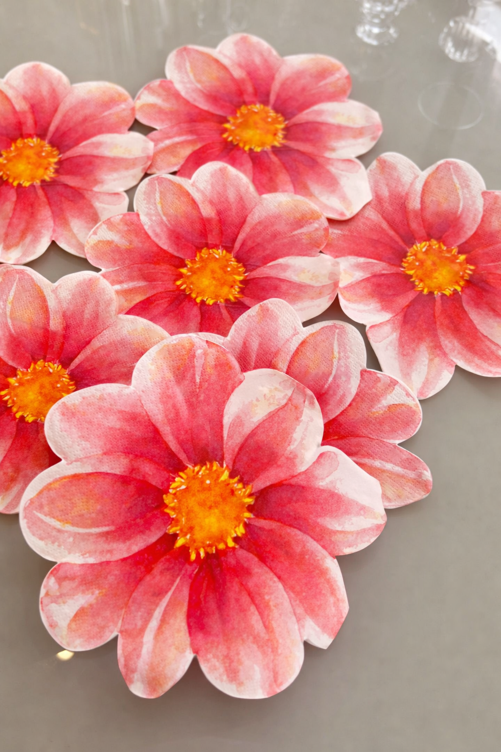 O Guardanapo Flor Dália Rosé é o detalhe perfeito para transformar sua mesa em uma composição encantadora e memorável. Com formato especial de flor e estampa em tons rosé, coral e nuances suaves, ele traz leveza, romantismo e um toque artístico à decoração.