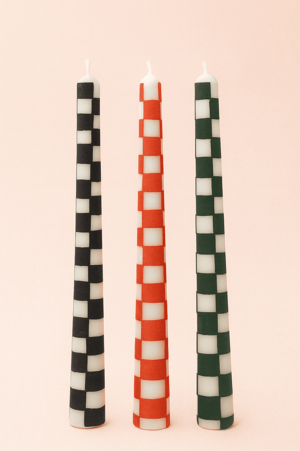 O Trio Velas Cônicas Xadrez - 3 Peças é o conjunto ideal para quem ama decorar com charme e personalidade. Com padrões xadrez nas cores preto, vermelho e verde, as velas criam uma composição visual vibrante e contemporânea — perfeita para enfeitar mesas, aparadores ou criar um ponto de destaque em qualquer ambiente.