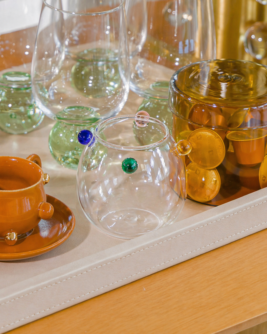 Versátil e cheio de estilo, é ideal para compor pequenos arranjos, acomodar flores naturais ou artificiais, ou até mesmo ser utilizado como peça decorativa em bandejas, estantes e mesas. Seus detalhes em cores sutis criam um contraste elegante com a transparência do vidro, tornando cada composição mais interessante e contemporânea.