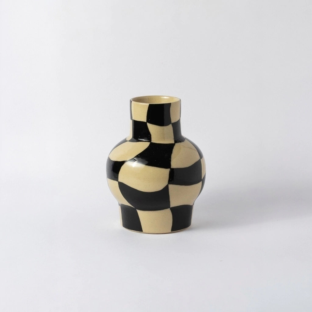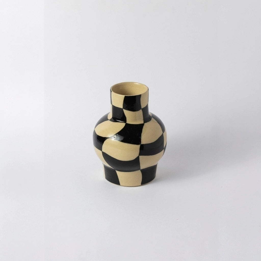 Com personalidade marcante e design contemporâneo, o Vaso Paixão Xadrez é a peça ideal para quem busca destacar a decoração com estilo e originalidade. Seu padrão geométrico em preto e bege cria um contraste sofisticado, trazendo um toque moderno e artístico para qualquer ambiente.