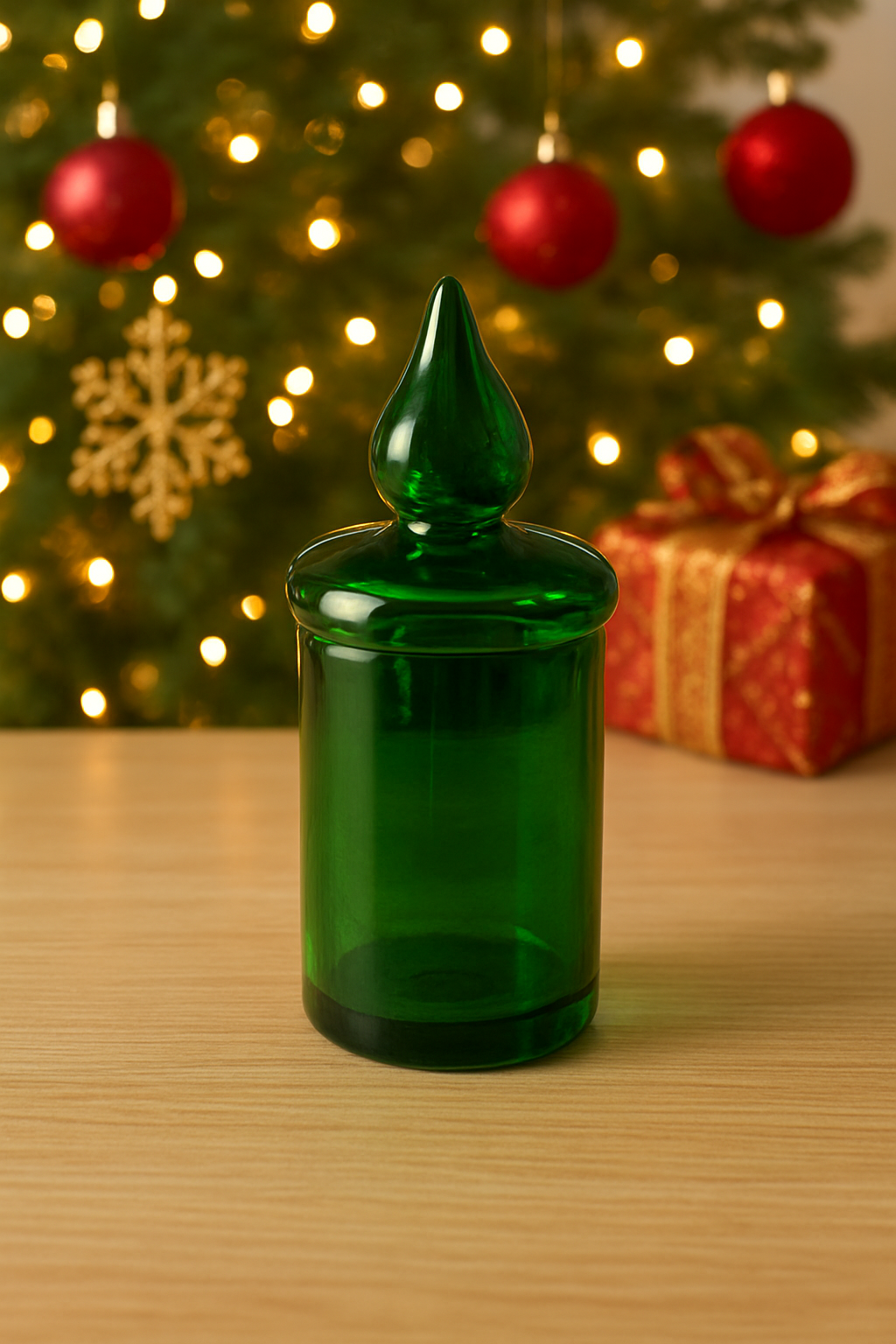 Transforme sua decoração natalina com elegância e sofisticação.A vela decorativa de vidro verde com tampa é uma peça que une charme clássico ao brilho aconchegante da chama amarelada. Com design refinado e acabamento translúcido, ela cria um efeito luminoso acolhedor, perfeito para compor ambientes festivos ou dar um toque especial...